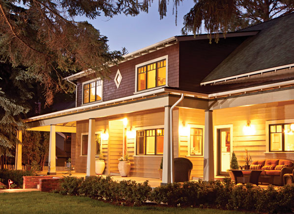 Safety, security, and ambience are important, but you’ll also need to consider climate. CFLs take longer to brighten the colder it gets and may not work in frigid temperatures. Check the packaging. On the other hand, cold temperatures don’t affect LEDs. Use floodlights or spotlights on the eaves or on the ground to illuminate dark areas for added security. Bulbs in the 2700 to 3000 Kelvin range emit a warm light that’s flattering to warm-colored exteriors, and cooler light 3500K or higher complements grays and can appear brighter.